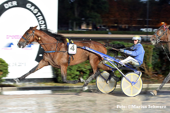 Goldy Stardust mit Michael Nimczyk gewann das Rennen um die Breeders Crown für 5- bis 7-jährige Stuten überlegen (Foto: ©Marius Schwarz)