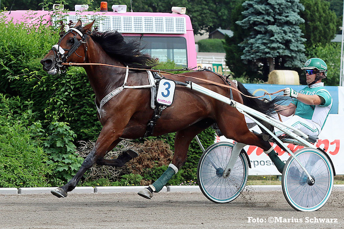 Auch Michael Nimczyk stellte mit Uno per te Diamant (56:10) einen starken Dreijährigen vor. Der kleine Bruder von RitchiRich Diamant (43.368 Euro Gewinnsumme) trumpfte nach einem geschonten Verlauf in 16,2/1.900m auf. Im Gegensatz zum zweitplatzierten Far West (Josef Franzl), der unterwegs eine Menge tun musste, brauchte der Hengst seine Stärken erst auf der Schlusshalben auszuspielen.