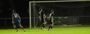 Zum Auftakt des 22. Spieltags der NOFV-Oberliga Nord eroberte der FC Hertha 03 durch einen 5:1-Sieg über Tennis Borussia zumindest bis Sonntag die Tabellenführung von Lichtenberg 47 (zuvor einen Punkt voraus, aber auch eine Partie mehr bestritten) zurück. Yildirim hatte die Hausherren zunächst in Führung gebracht (27.), aber nach dem Ausgleich durch Cvjetinovic (50.) kurz nach Wiederbeginn stand die Partie durchaus auf der Kippe. Doch Hertha 03 schlug wie ein Topteam zurück und ging durch Beyazit (55., Foto) sowie A. Millgramm (68.) bei einsetzendem Starkregen sicher in Führung. Danach beruhigte sich das Wetter wieder, und auch die Partie verlief nun in klaren Bahnen: Didoss mit einem Traumtor (77.) und Stein per Abstauber (88.) sorgten für den Endstand.