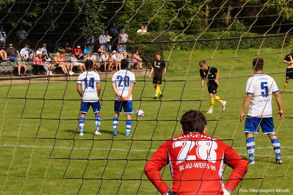 Großes Bild: Spannendes Spiel - am 1. Spieltag empfängt Titelfavorit Blau-Weiß 90 den Berliner SC - hier eine Szene aus der vergangenen Saison vom BSC-Sportplatz