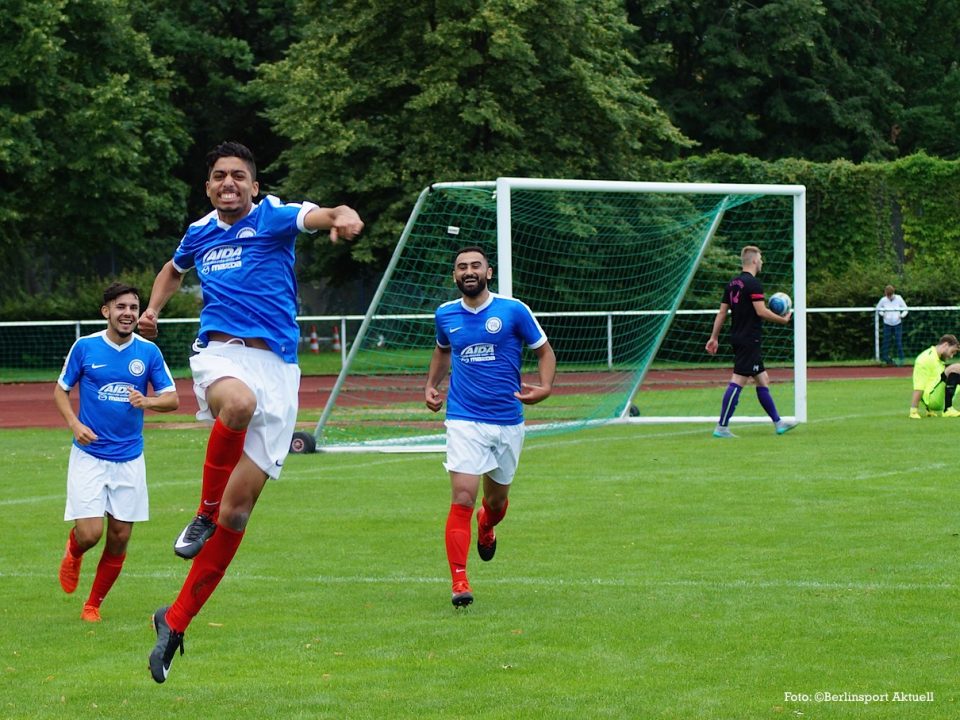 Großes Bild: Völlig losgelöst - gerade hat Tasmanias Einwechselspieler Mohammed Hassane mit seinem Tor zum 3:1 für die Entscheidung in Schöneberg gesorgt
