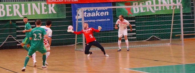 Am Samstag fand in der Charlottenburger Sömmeringhalle die Vorrunde des traditionsreichen Berlin-Liga-Hallenturniers statt. Dieses Jahr allerdings erstmals unter geänderten Voraussetzungen: so wurde zwar auf große Tore, ansonsten aber unter Futsal-Bedingungen (u. a. sprungreduzierter Ball, keine Bande) gespielt.