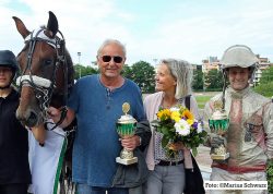 Nicht nur die Siegquote war phänomenal – auf Place zahlte der Wallach stolze 212:10 und die Quote der Dreierwette mit SJs Sunday (Roland Hülskath) und Flirty or Dirty (Thomas Panschow) auf den weiteren Rängen betrug 27.961:10.