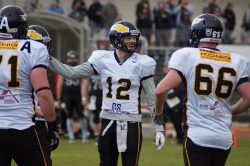 Zu allem Überfluss verletzte sich zuletzt Quarterback Paul Zimmermann, sodass die Adler mit Niko Andre Fortino kurzfristig für Ersatz auf dieser Position sorgen mussten. Der US-Amerikaner gab nach wenigen Trainingseinheiten gleich vergangene Woche beim schweren Auswärtsspiel bei den Kiel Baltic Hurricanes seinen Einstand. Mit 6:35 (der Adler-Touchdown durch Wide Receiver und Quarterback-Bruder Max Zimmermann) fiel die Niederlage der Berliner auch angesichts zahlreicher Ausfälle vergleichsweise überschaubar aus. Der Gegner vom Samstag, die Hildesheim Invaders, gehören bislang allerdings zu den (beiden) Teams der Nord-Staffel, gegen die man gewinnen muss – wenn man nichts mit dem Abstiegskampf zu tun haben will.