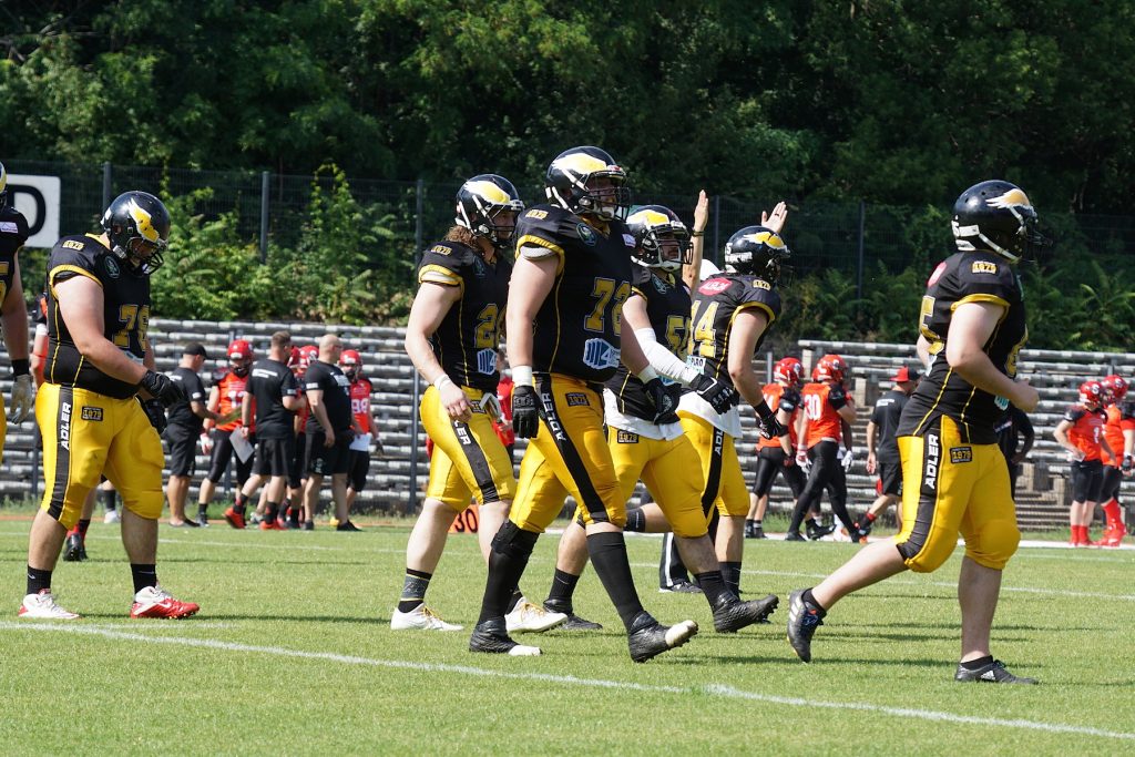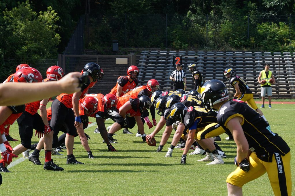 Hochspannung am Sonntag im Poststadion: das Spitzenspiel der Regionalliga Ost hielt viel von dem, was es versprochen hatte. Dass die Berlin Adler und die Spandau Bulldogs wegen des ungewöhnlichen 36:36 (14:19) beide weiterhin ungeschlagen bleiben, passte da ins Bild. Da die Adler als Favoriten und mit dem Heimvorteil ins Spiel gingen, war die Stimmung anschließend nicht ganz so euphorisch im Lager der Weddinger. Den gewünschten Vorsprung für den weiteren Verlauf der Meisterschaft konnte man jedenfalls nicht herausholen – bleiben beide Teams so dominant wie bisher, könnte es so auf ein "Endspiel" im August in Spandau hinauslaufen.