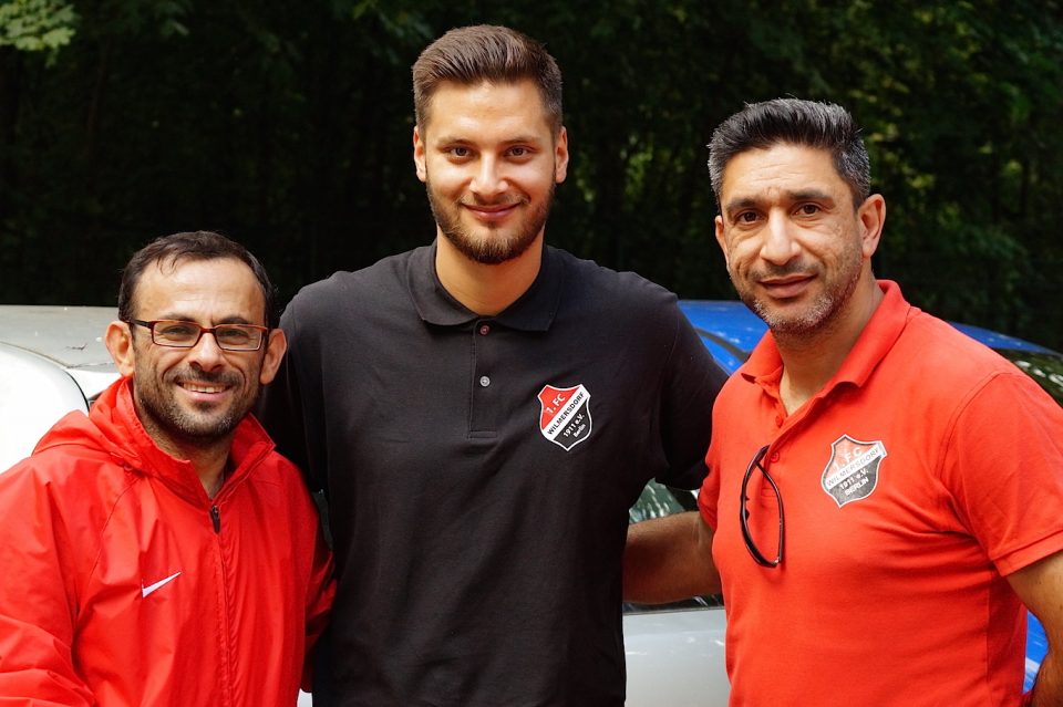Nachwuchstrainer Izet Ismailoglu (r.) erklärt dazu die Maximen der Wilmersdorfer Jugendarbeit. (Foto, Mitte: Teammanager Serkan Dinckan)