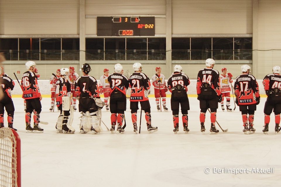 Großes Bild: Zum Vorrundenabschluss setzte es für die Preussen (vorne) eine 1:6-Niederlage gegen die Wedemark Scorpions