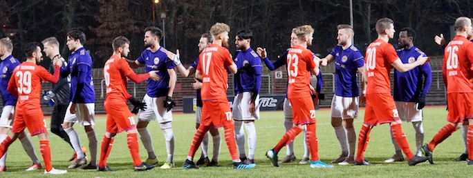 Am Abend besiegte Tabellenführer Tennis Borussia den SV Tasmania mit 3:2 (2:0) und überwintert damit auf dem ersten Platz. Vor rund 600 Zuschauern im Mommsenstadion brachte Rabiega die Lila-Weißen mit einem Doppelpack vor der Pause in Führung, musste dann aber verletzt ausgewechselt werden. Der Aufsteiger kam in der zweiten Halbzeit aber durch Tore von Hartwig und Loder zurück, ehe Elezi zwölf Minuten vor dem Ende der letztlich entscheidende Treffer gelang.