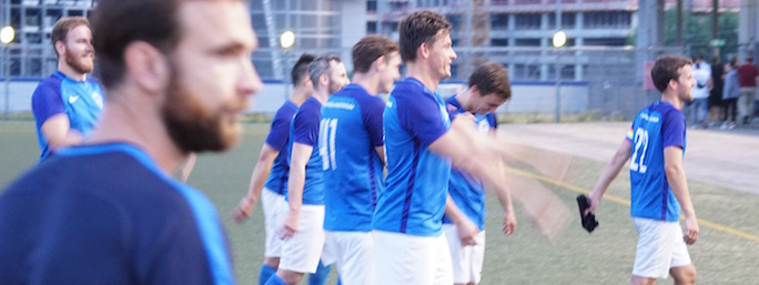 Erst im zweiten Anlauf konnte das Qualifikationsspiel zur 1. Runde im Berlin-Pokal zwischen Blau-Weiß Friedrichshain und dem VfB Einheit zu Pankow komplett durchgeführt werden – am Dienstagabend setzte sich Blau-Weiß zuhause (der einschlägig bekannte Platz auf dem Dach eines Großmarkts am Ostbahnhof) mit 2:0 (1:0) im Duell der A-Kreisligisten durch. Ende Juli musste die Partie kurz nach Anpfiff wegen eines Gewitters noch abgebrochen werden.