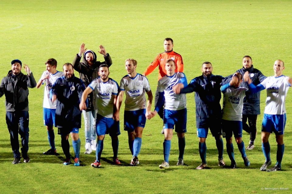 Foto: Müde, aber glücklich - Spieler des SV Tasmania feiern mit ihren Fans