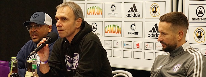 Berlinsport Aktuell war nach dem Spiel am gestrigen Abend bei der Pressekonferenz mit den Trainern Markus Zschiesche (Foto r., Tennis Borussia) und Abu Njie (Tasmania) und bietet einen Zusammenschnitt der Aussagen.
