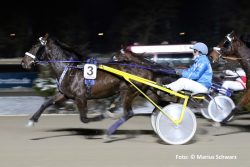 Zweiter Doppelsieger war Dennis Spangenberg, der sich mit beiden Top-Favoriten lange Zeit ließ und seine Fans schmerzvoll auf die Folter spannte. Als er Rossini Diamant 600 Meter vorm Ziel aus dem zweiten Paar außen von der Leine ließ, war der nunmehr vierfache Seriensieger sofort überlegene Ware und hatte ab der letzten Ecke zum Geldwechsel-Kurs von 10:10 alle überaus souverän in der Tasche.