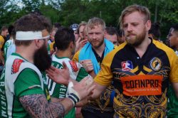 Enttäuscht, aber stolz: Angeführt von Kapitän Falk Duwe (r.) nehmen die Spieler des RK 03 nach der Partie die Respektbekundung des Gegners entgegen