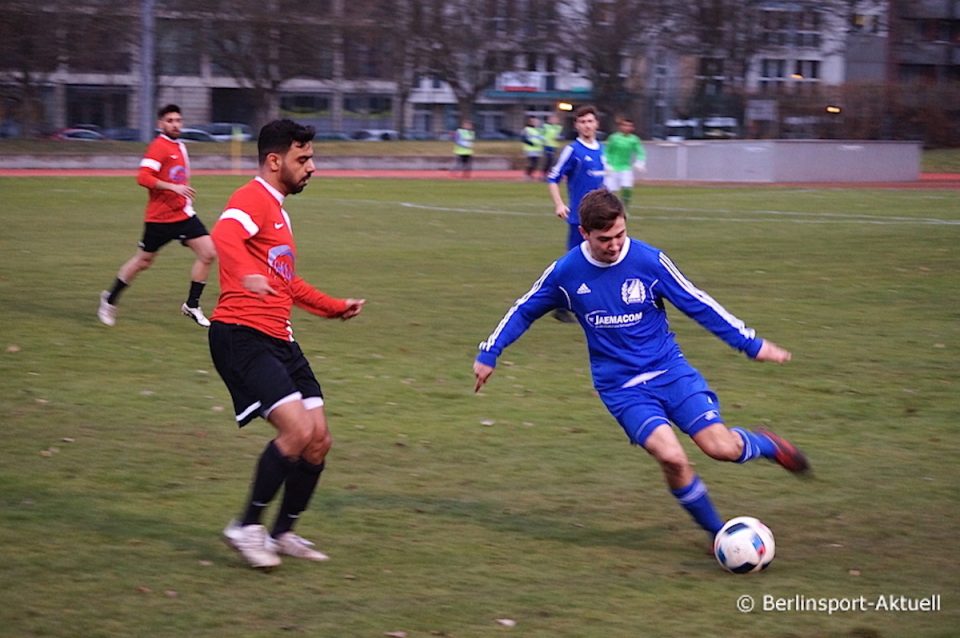 Der SV Empor (in Blau) verlor sein letztes Hinrundenspiel in der Berlin-Liga am Nachmittag zuhause mit 2:4 gegen den BSV Al-Dersimspor. Die Gäste gingen mit einer 2:0-Führung in die Kabinen, Moerer brachte die Hausherren per Strafstoß nach einer Stunde wieder ins Spiel - doch die Kreuzberger erhöhten ihrerseits per Foulelfmeter wieder auf 3:1. Empor gelang fünf Minuten vor dem Ende zwar der erneute Anschluss, mehr war am Nachmittag aber nicht mehr drin. Im Gegenteil: Wegner handelte sich noch eine Rote Karte wegen einer Notbremse ein, den daraus resultierenden dritten Elfmeter des Tages nutzte Al-Dersimspor zur endgültigen Entscheidung. Das Team vom Anhalter Bahnhof hat jetzt vier Siege in Folge vorzuweisen und spielt nächste Woche noch zuhause gegen TuS Makkabi.
