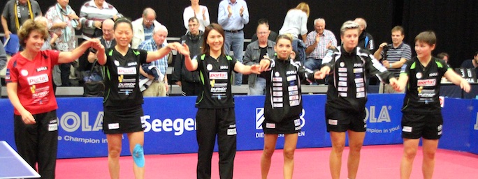 Ebenso glänzender wie anstrengender Saisonstart für die Damen des ttc berlin eastside am vergangenen Wochenende: gleich in allen drei Wettbewerben ging es für die Berlinerinnen los. Am Freitag im Rahmen der Gruppenphase der Champions League gegen die spanische Vertretung von Girbau Vic TT (3:0 gewonnen), tags darauf in der Bundesliga gegen TTK Anröchte (6:0) sowie am Sonntag in der Qualifikation für das Final Four im Pokal (jeweils 3:0 gegen Böblingen bzw. Hannover) konnte das Team von Trainerin Irina Palina nicht nur alle Vergleiche für sich entscheiden, sondern blieb dabei sogar ohne Spielverlust.